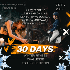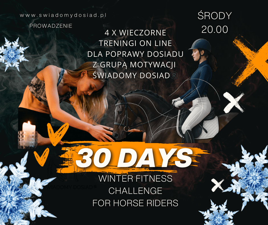 Nasze zimowe wydarzenie ma na celu MOTYWACJĘ jeźdźców (młodzieży i dorosłych) do regularnego wykonywania ćwiczeń poprawiających mobilność ciała .